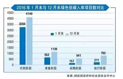 纵观现有的1.1万多全国PPP入库项目,生态建设和环境保护类去年底达到633个,在19个一级行业中位于前列。横向来看,涉及绿色低碳的项目共6612个,投资达5.5万亿元,其中792个已签约落地。相比2016年1月末,新增落地项目581个,落地率从23%升至32%。