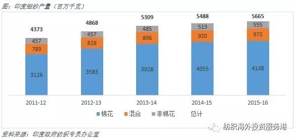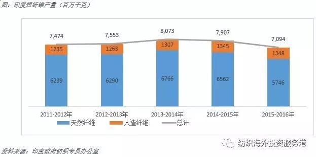 印度2015年至2016年的短纤维总产量为70亿千克,其中棉花占81%。但在过去五年中,人造纤维的占比从17%升至19%,表明对人造纤维的关注度逐渐增加。