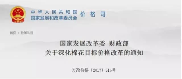据悉,2014-2016年,国家在新疆启动了为期三年的棉花目标价格改革试点,取得了明显成效,目前试点已经结束,国家发展改革委和财政部对试点情况进行了全面总结,并委托有关机构开展了第三方独立评估,在此基础上,提出了深化棉花目标价格改革的意见。按照2017年中央1号文件关于“调整完善新疆棉花目标价格政策,改进补贴方式”的精神,经国务院批准,2017年起在新疆深化棉花目标价格改革,进一步完善目标价格政策。