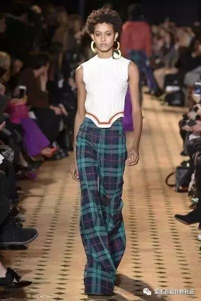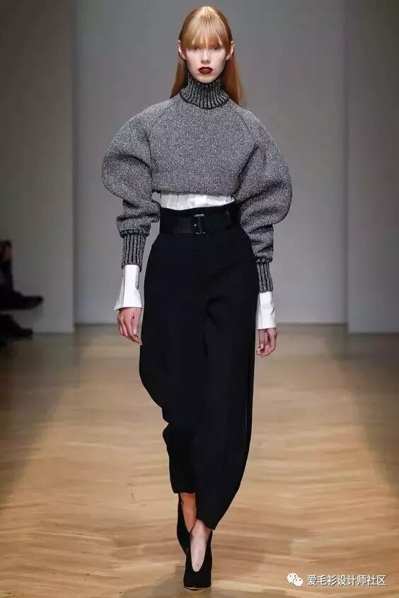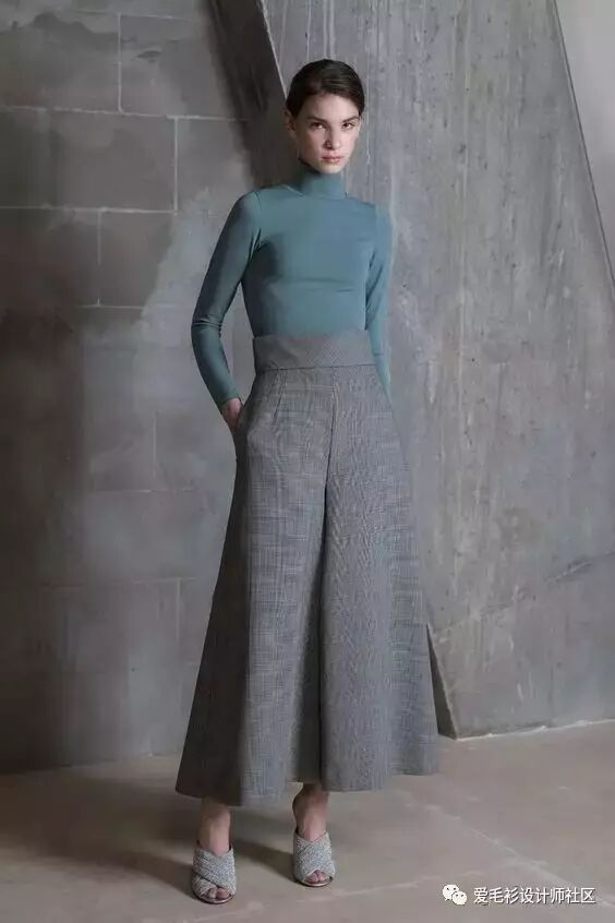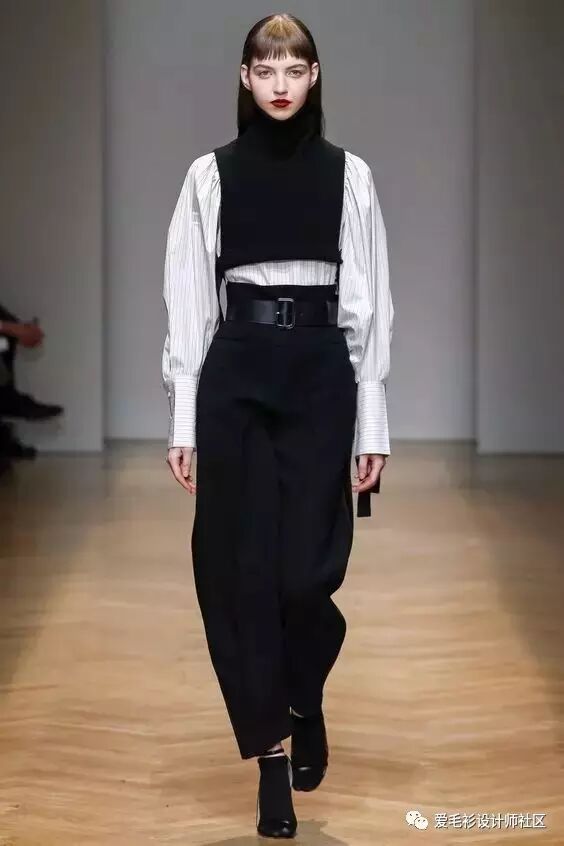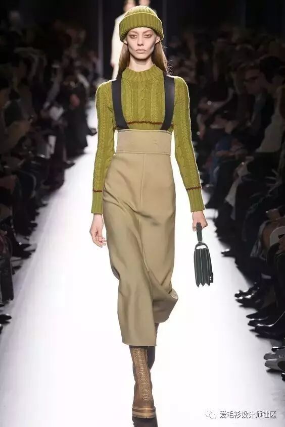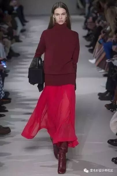 针织半身毛衣,搭配中长裙或阔腿裤是2017秀场上常见的搭配。高饱和度亮色修身高领毛衣,搭配深色系下装,时髦高级由不会沉闷。