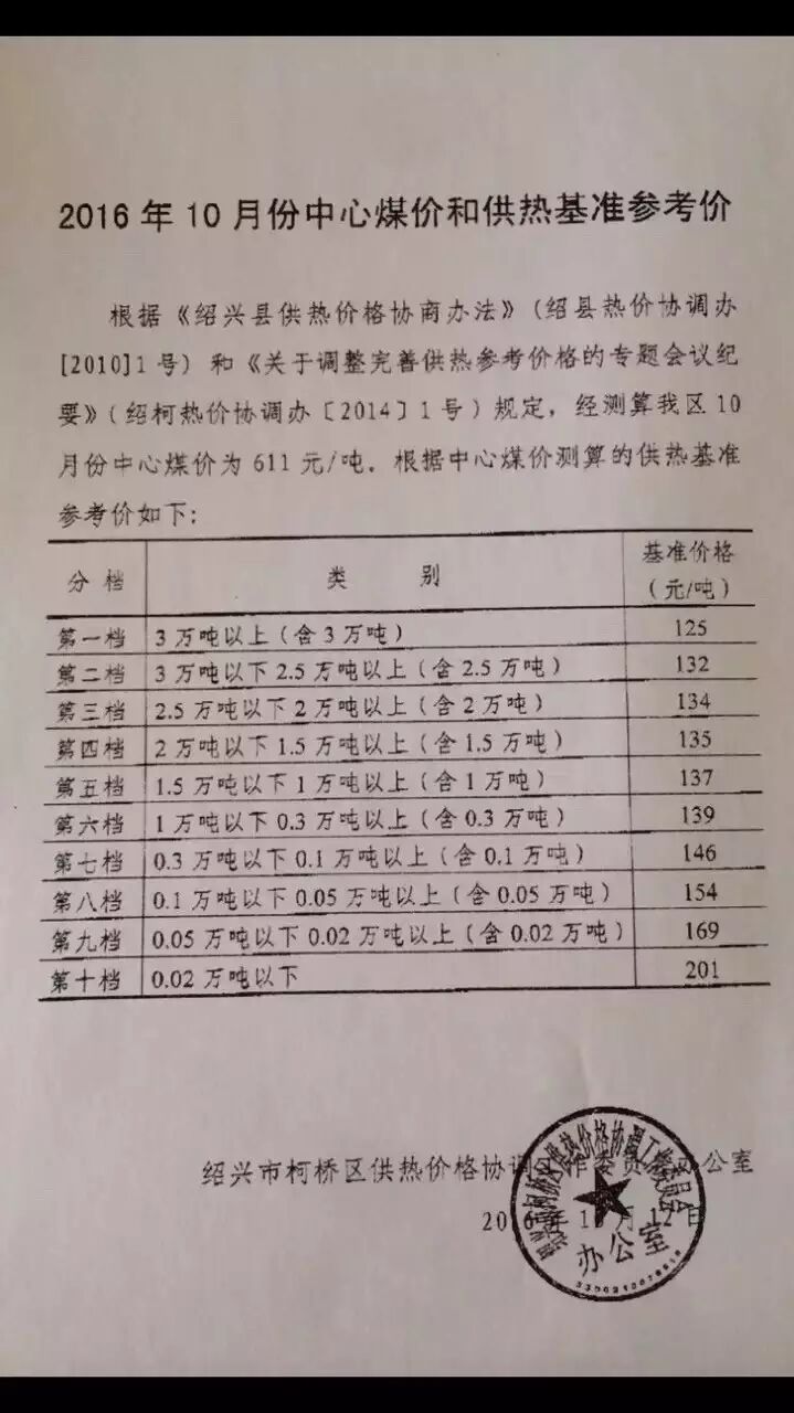 10月份绍兴柯桥区蒸汽供热参考价格公布(125-201元/吨)