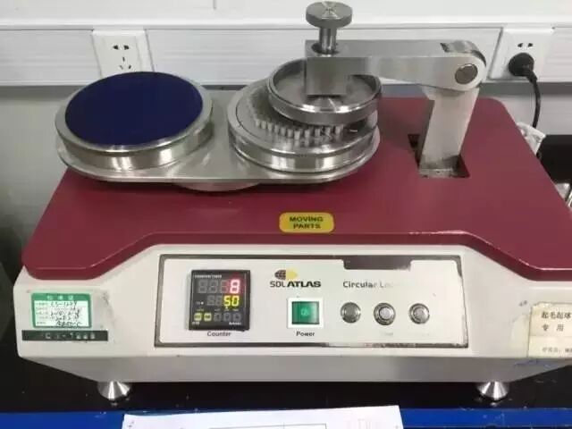 在规定压力下,圆形试样绕与试样平面垂直的中心轴自由转动,以李莎茹图形的轨迹与相同织物或羊毛织物磨料进行摩擦。适用于床品类检测。