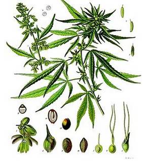 大麻(汉麻):纤维的性状与亚麻相似,在欧洲常用作亚麻的代用品。