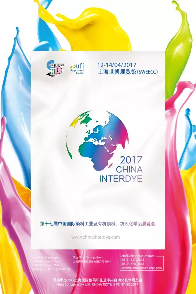 中国国际染料展是全球规模最大的染化展,已经成功举办16届,下届展会将于2017年4月12-14日在上海世博展览馆盛大召开,同期还将举办2017上海国际数码印花及印染自动化技术展览会,展出总面积超过40000平米,展商数预计650家,行业顶尖盛会,精彩不容错过!