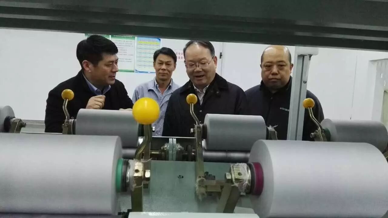 中国纺织工业联合会党委书记、纺织之光科技教育基金会理事长高勇参观武汉汉麻生物科技有限公司生产车间