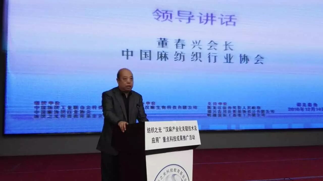 董春兴表示:此次纺织之光“汉麻产业化关键技术及应用”重点科技成果现场推广活动,就是想使更多更好地先进技术得到推广应用,早日转化成创新成果,推向市场,通过科技创新带动全行业转型发展,让更多的消费者感受到麻纺织的舒适性。面对行业转型升级,今后麻纺织行业将紧紧围绕消费需求,以“三品战略”提升为重点,不断把麻纺织产品做成中高端产品。