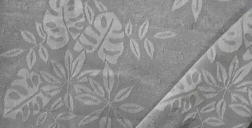 提花织物的花纹不是普通印花,也不是绣花,而是直接把花纹织在布料中,用不同颜色的经纱和纬纱相互交错搭致、交织沉浮,从而形成不同花色的图案。提花织物质地细腻、爽滑,光泽度好、手感佳、悬垂性及透气性好,色牢度高(纱线染色),使用起来不变形,不褪色,舒适感好,相比较绣花面料而言,造价成本更高,多用于床品和服装。