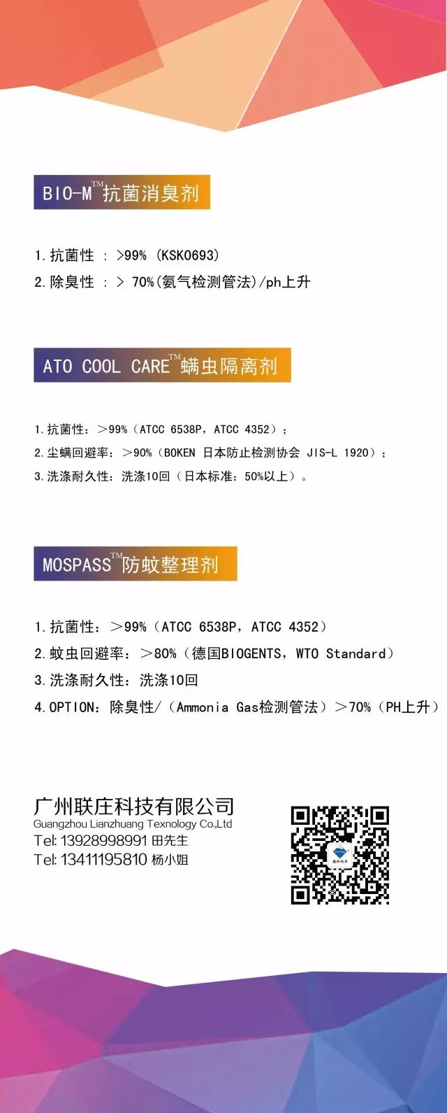纤佰欧抗菌产品获得美国FDA NAMSA研究所口服毒性验证,FITI试验研究所4大安全性验证,Oeko-Tex®Standard 100认证。产品原料是对人体无害的亲环境物质,产品抗菌率高达99%以上。因此,纤佰欧抗菌产品自推出试生产的产品以来,就一直深受韩国用户和客商的青睐。