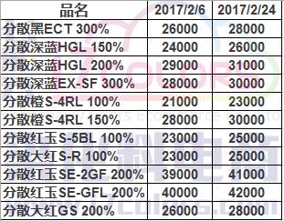 2月24日消息,受成本、环保、供需等多方因素影响,分散染料价格再次上涨。